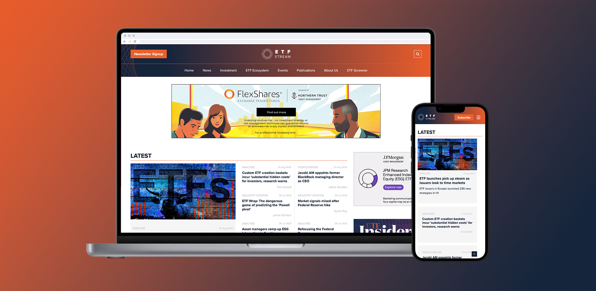ETF Stream is the leading media platform for all things Exchange Traded Funds. But their existing WordPress site wasn’t cutting it – it lacked the sophistication needed to support commercial growth, drive engagement, and provide a seamless user experience.